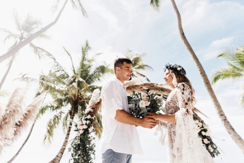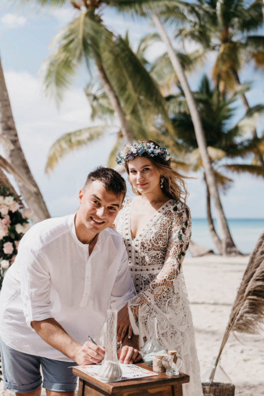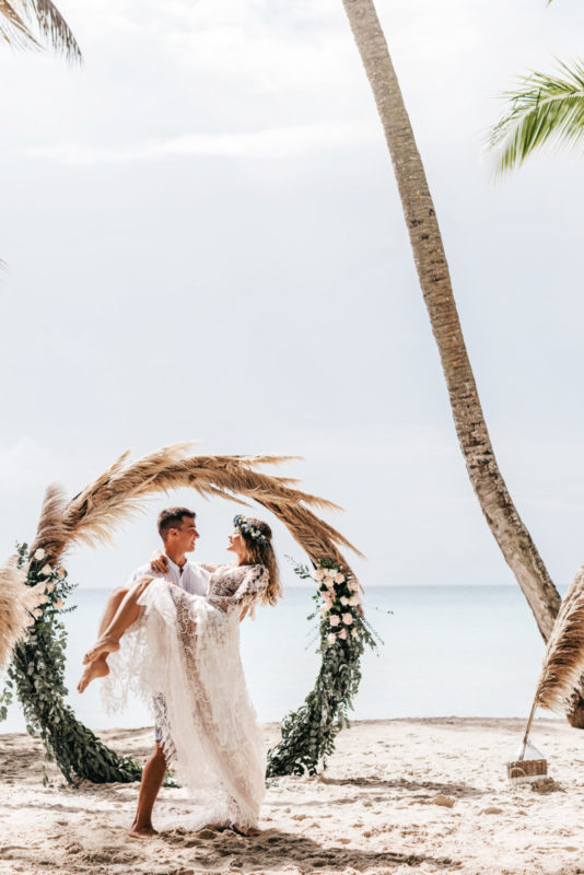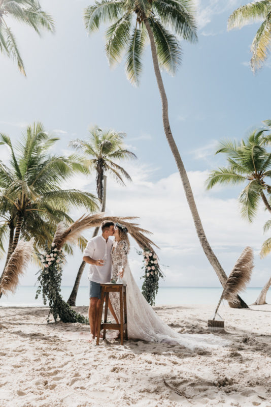 Gorgeous boho style wedding on the Saona Island with pampas grass decor