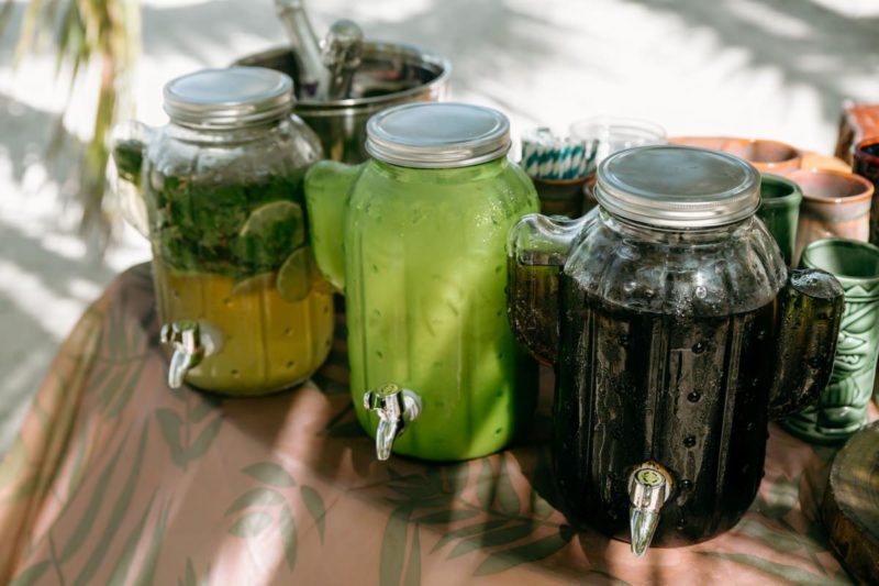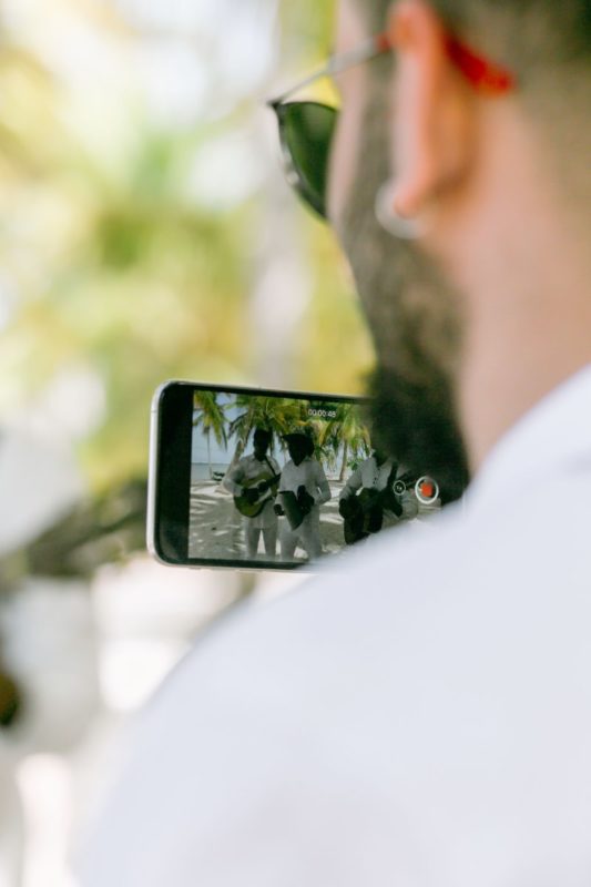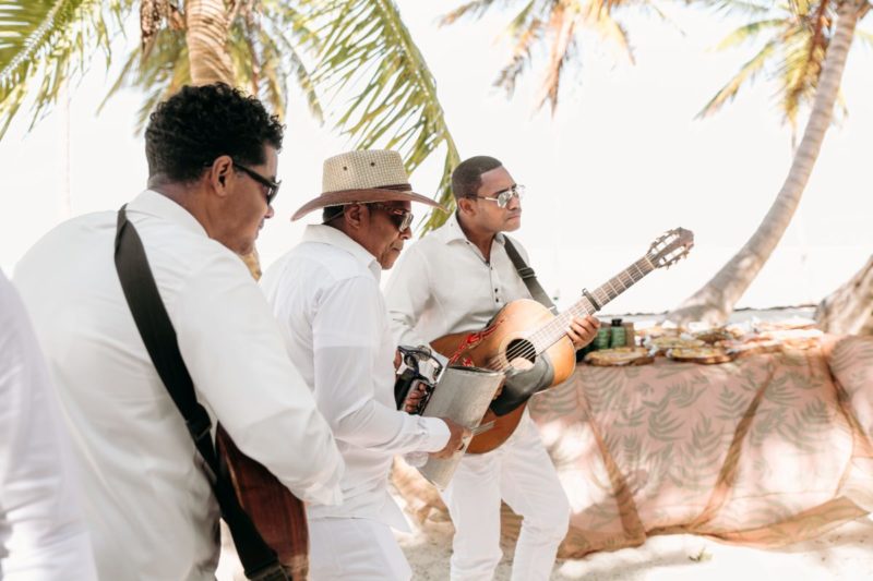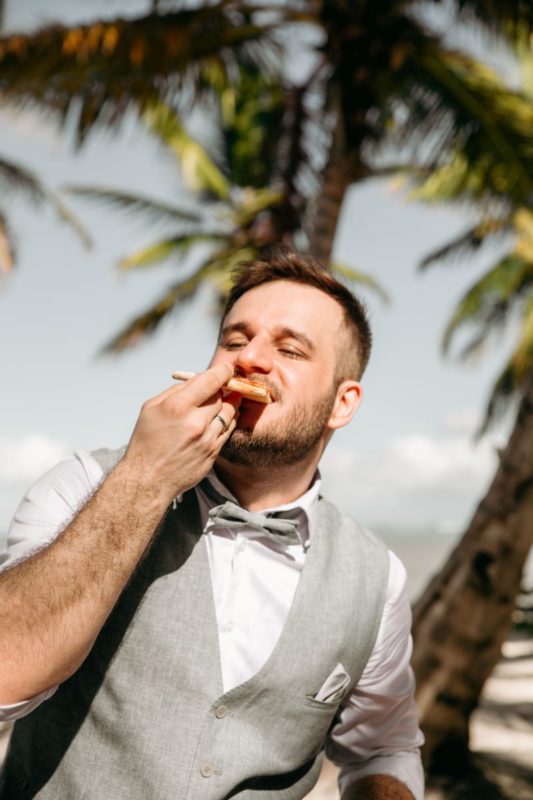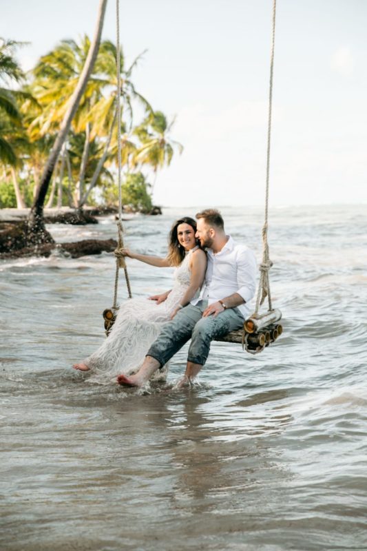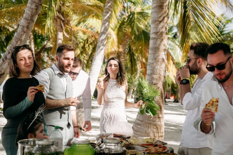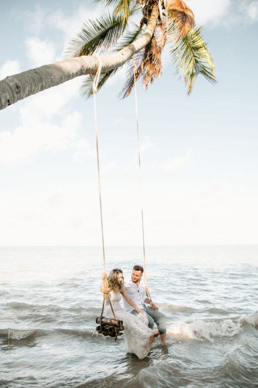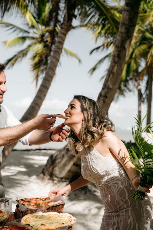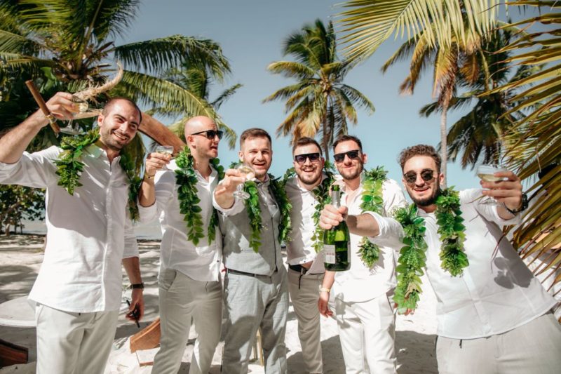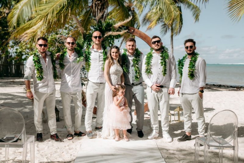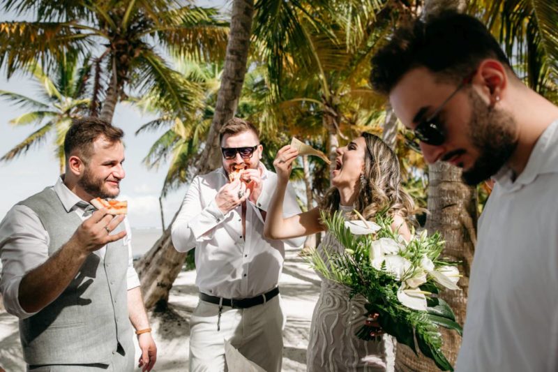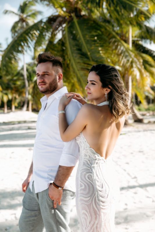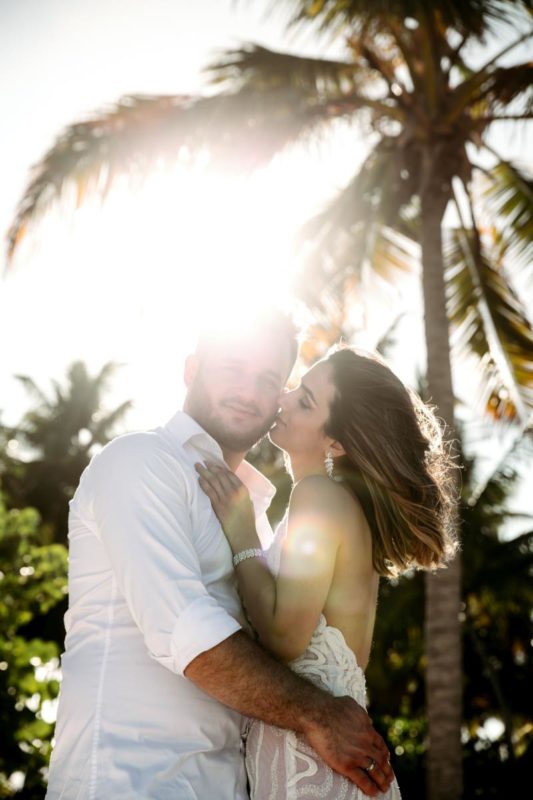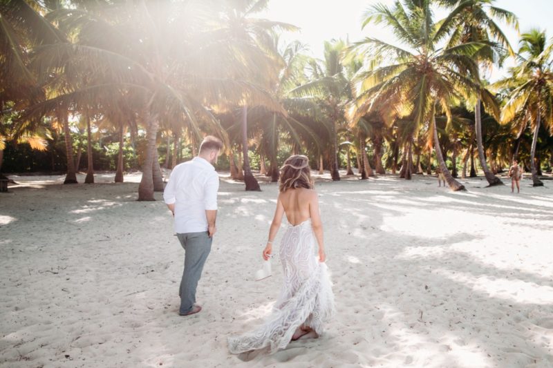 Gorgeous tiny wedding on a private beach.Tropical greenery, pampas grass, transparent details.