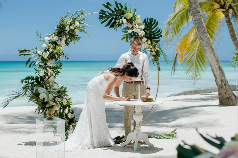 Sunny barefoot tiny wedding celebration with the nearest and dearest.