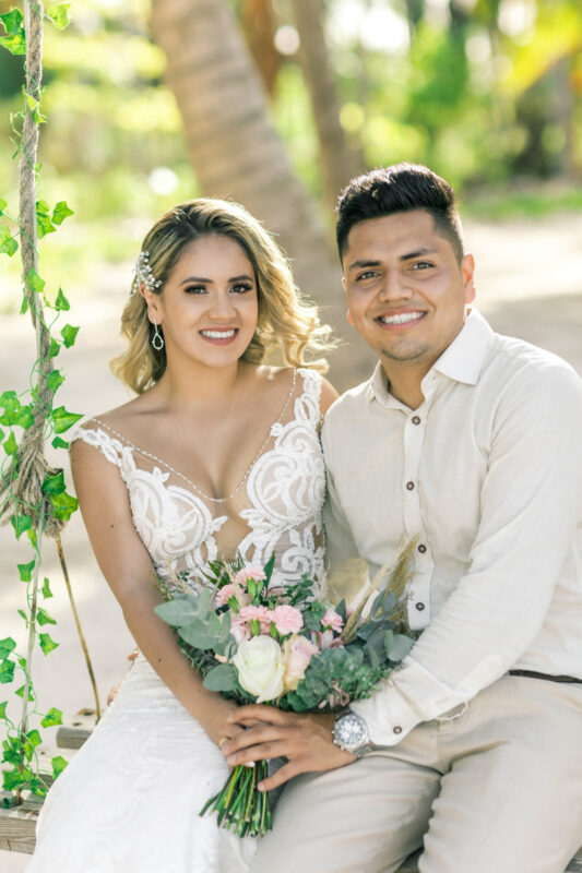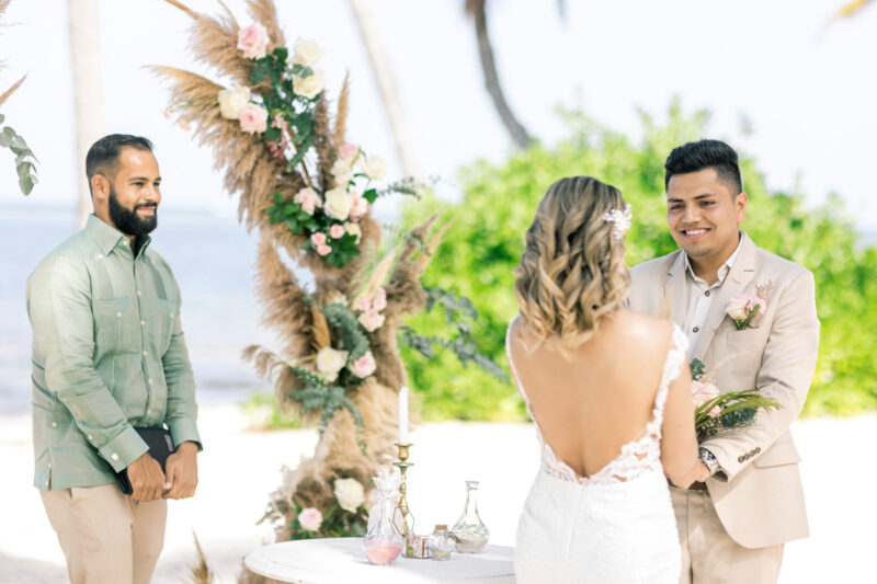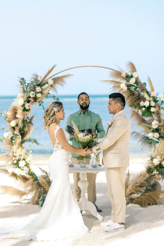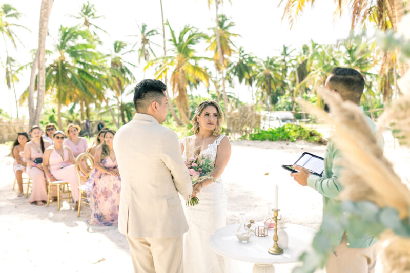 Boho style beach wedding with 14 guests of beautiful couple from Colombia in Punta Cana
