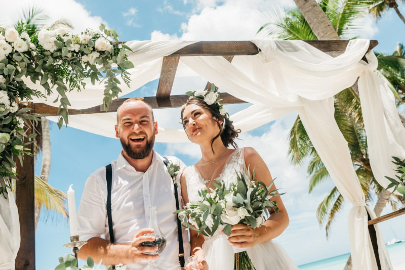 Beautiful boho style wedding for two on the tropical island