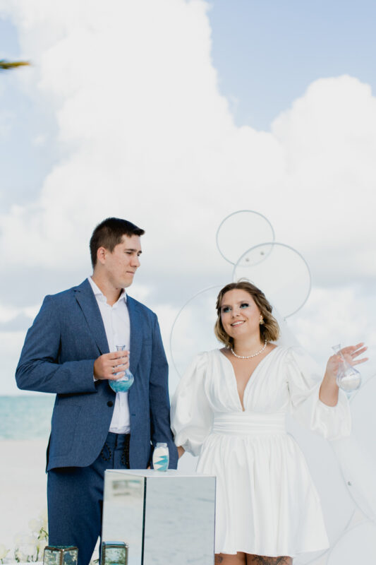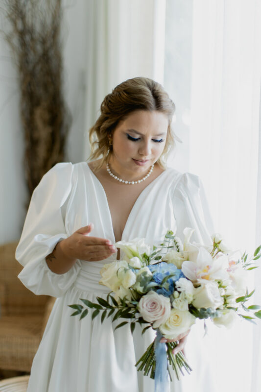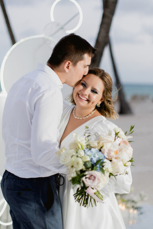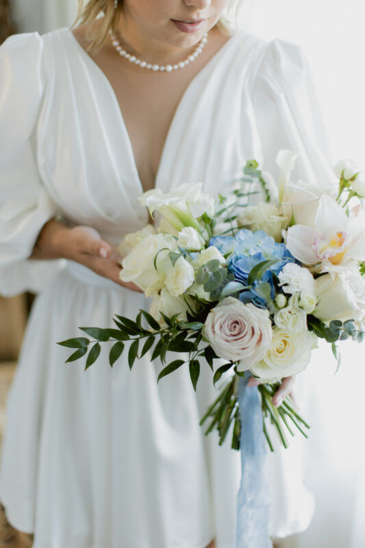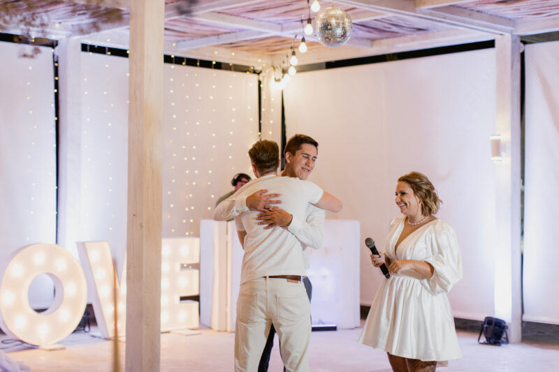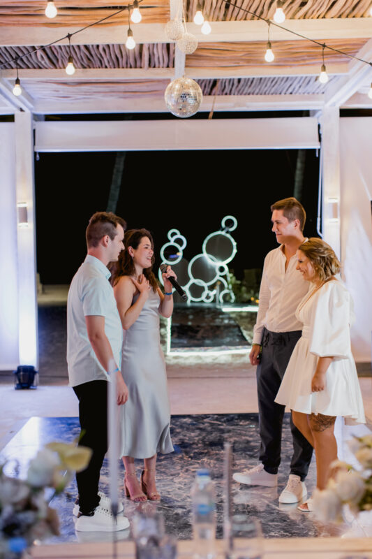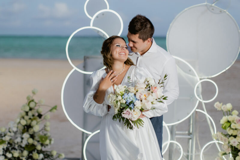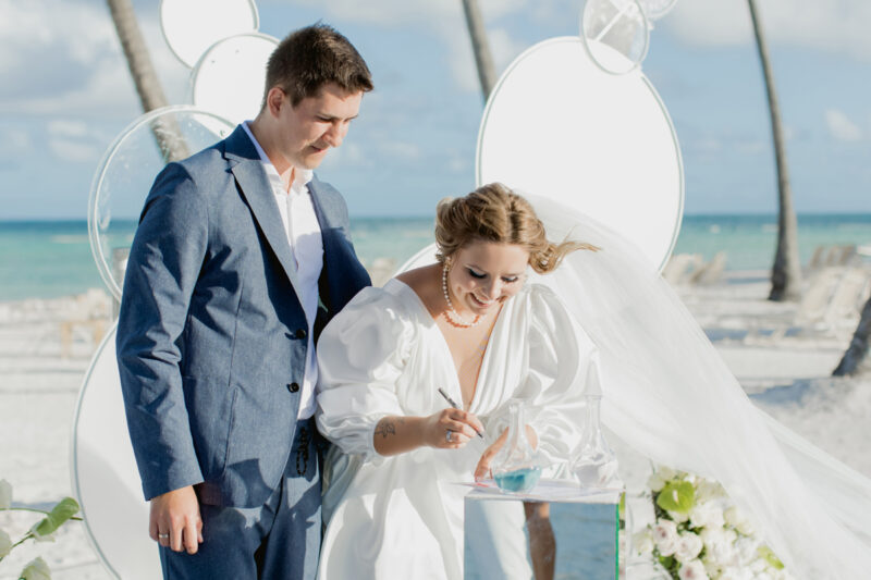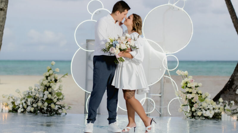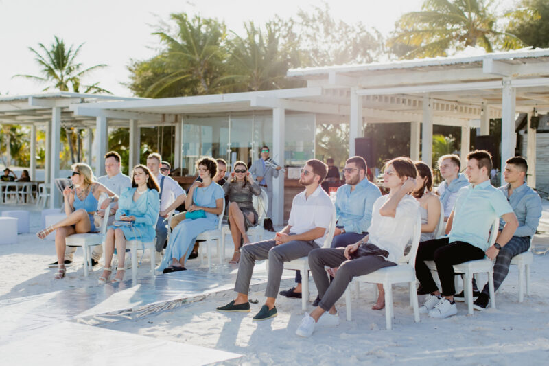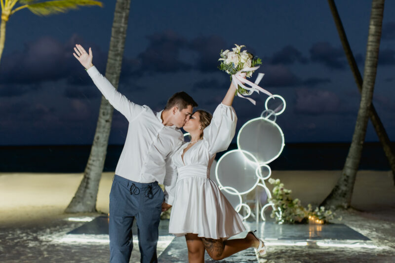An intimate, stylish and so atmospheric wedding for a young couple from Ukraine. Bespoke illuminated backdrop arch, mirrored walkway and dance floor. Shades of dusty blue & Shine of mirrors & Disco balls