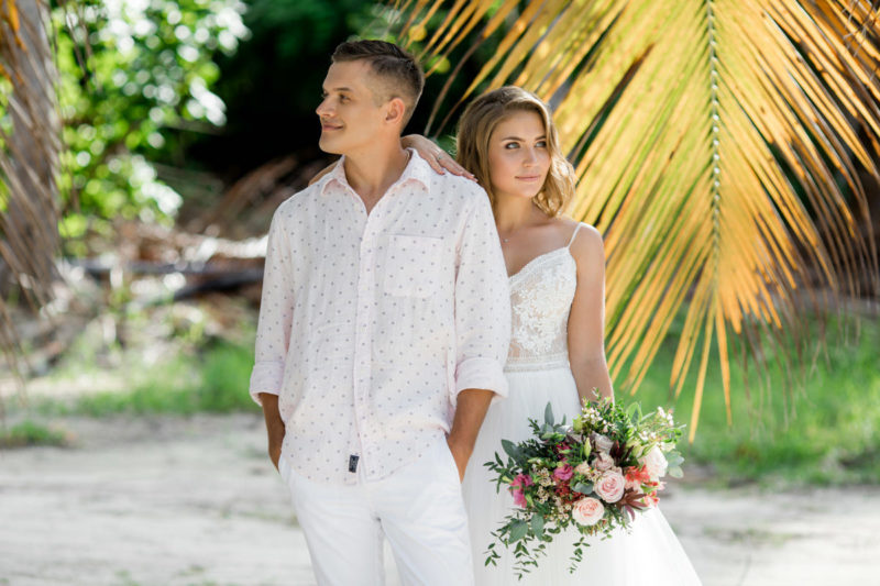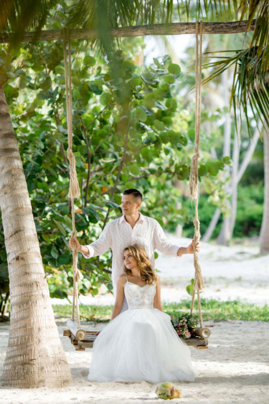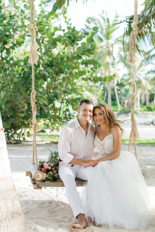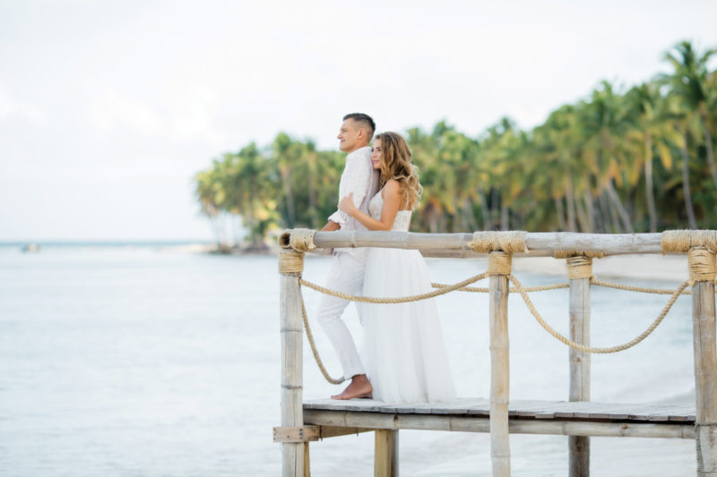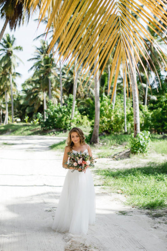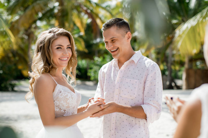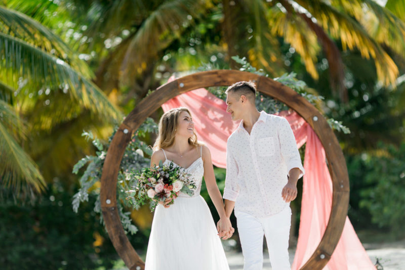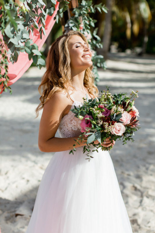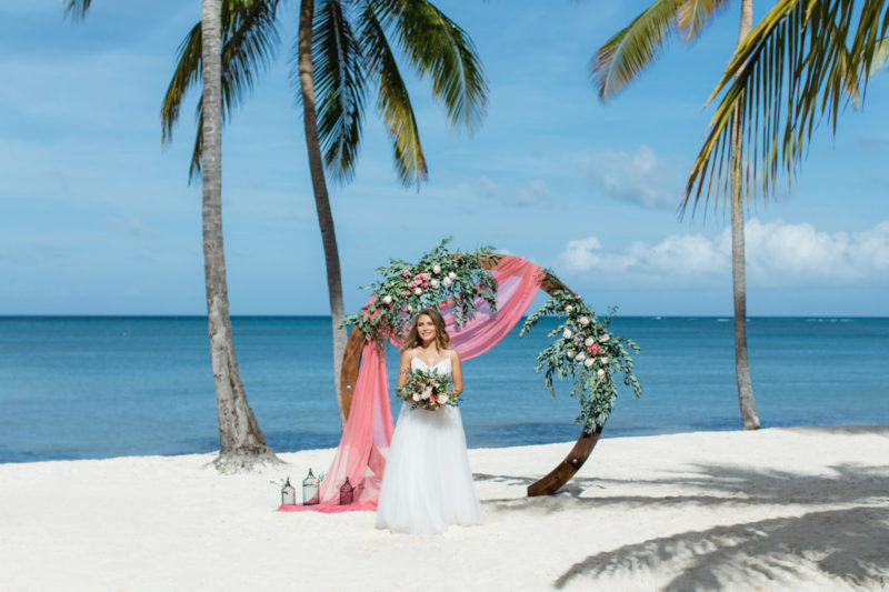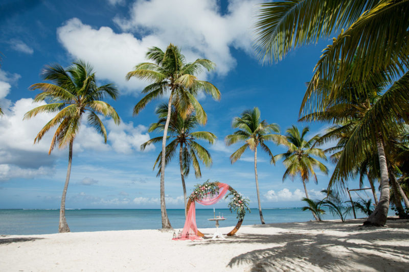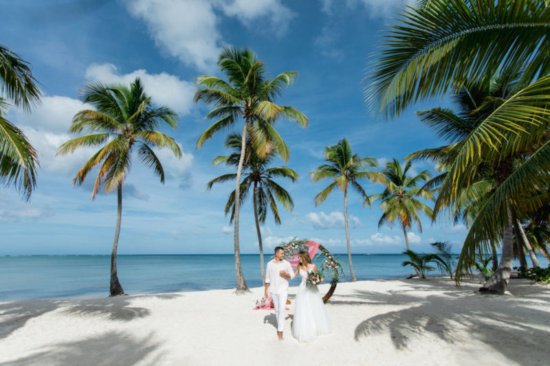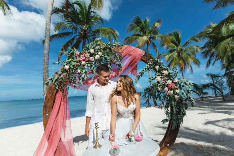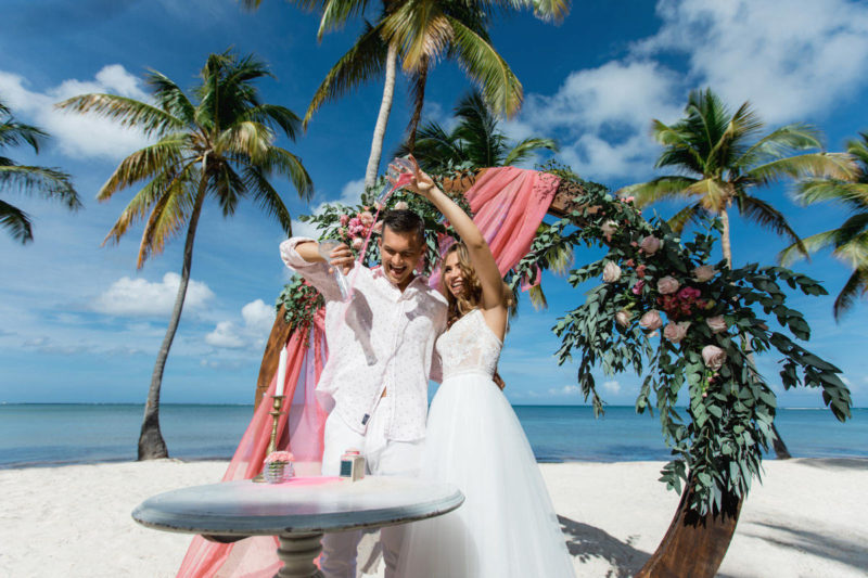 Свадебная церемония для двоих в розовом цвете на частном пляже в Пунта Кане