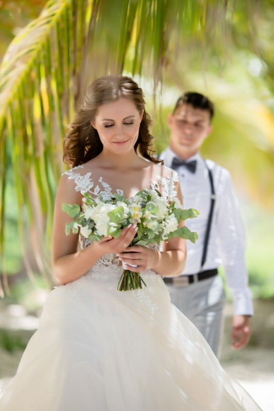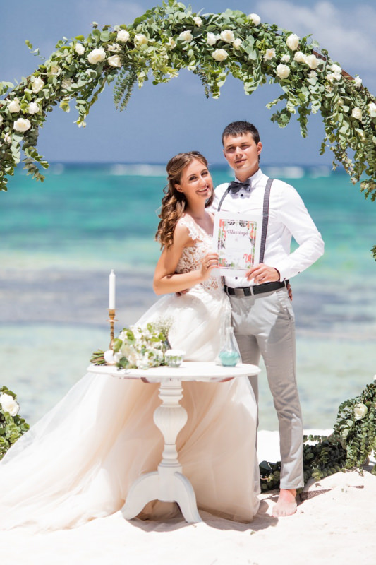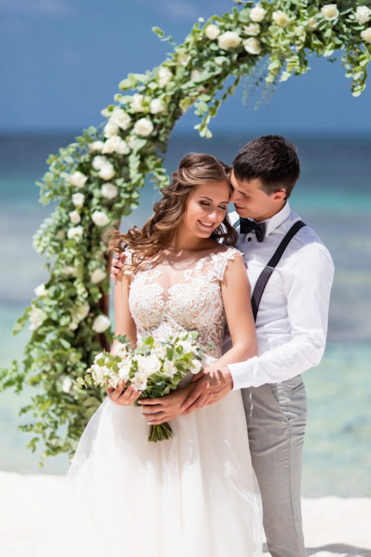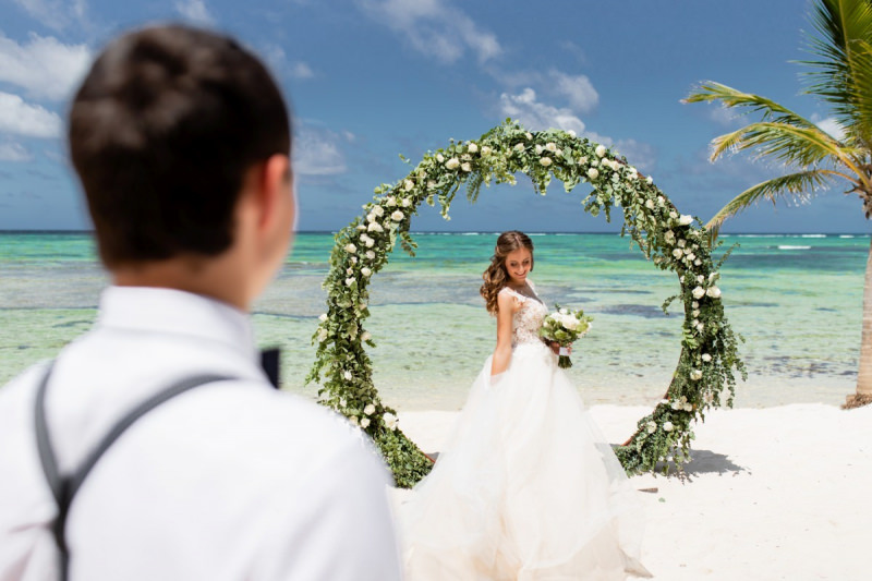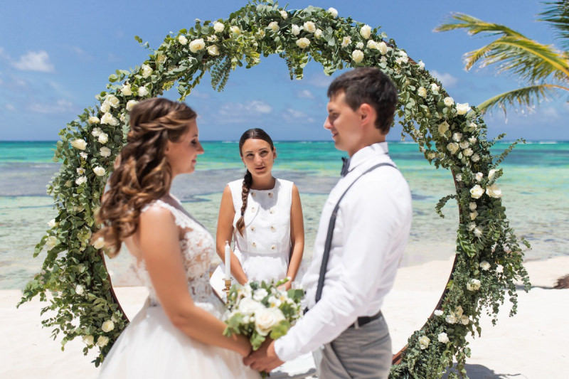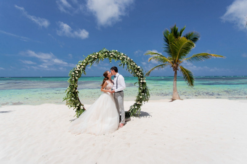 Великолепная свадебная церемония с круглой цветочной аркой в Пунта Кане