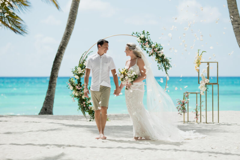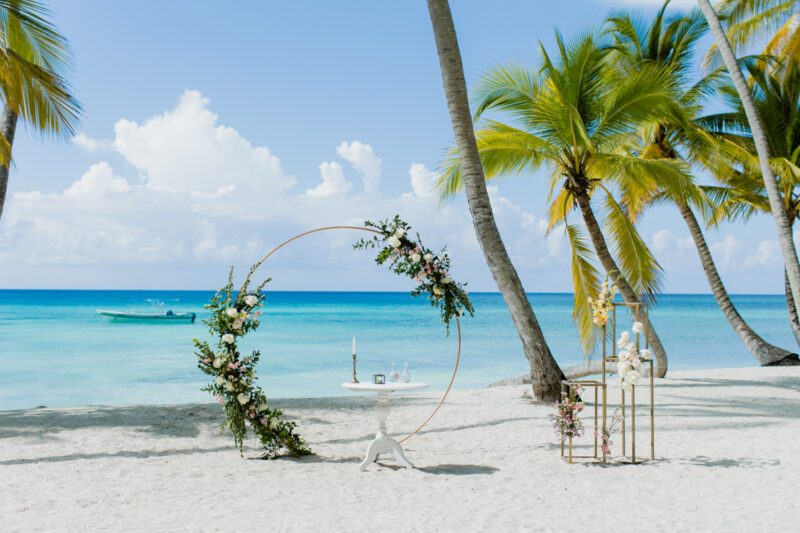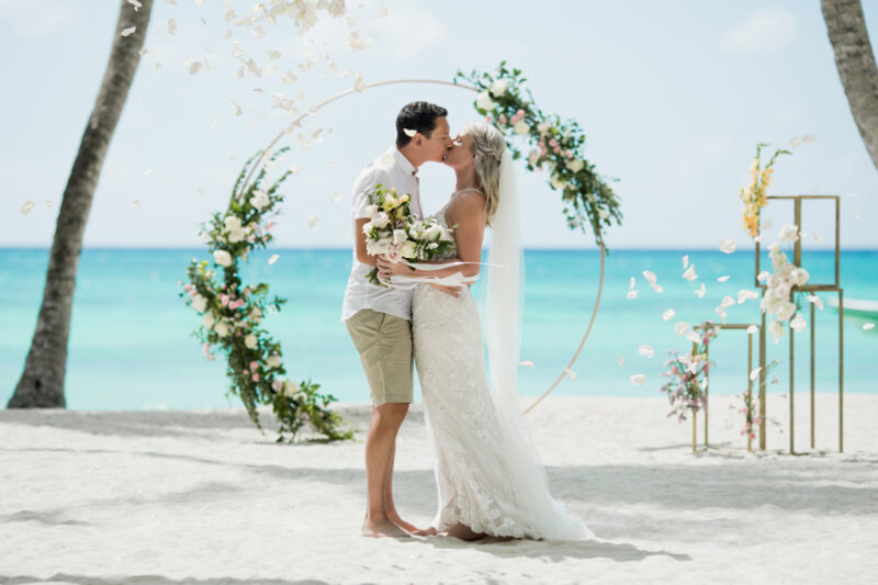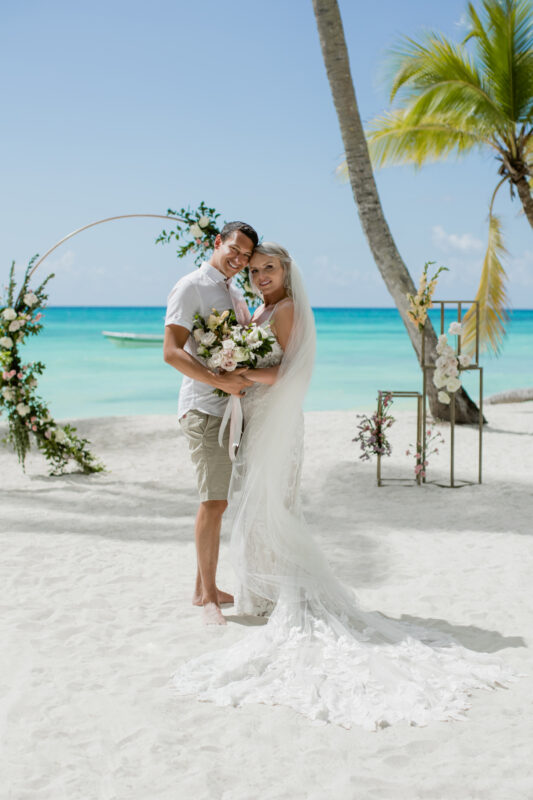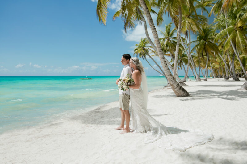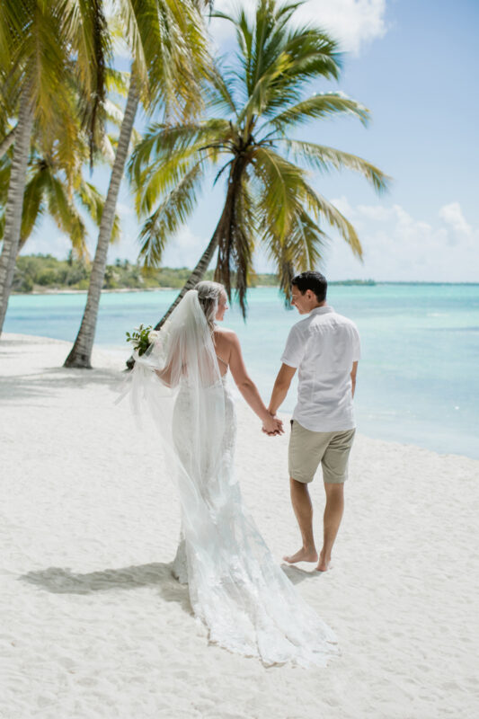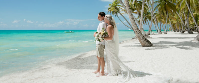 Пляжная официальная свадьба на острове саона на Карибском побережье Доминиканы для пары из Великобритании. Только мы вдвоем на другом конце света