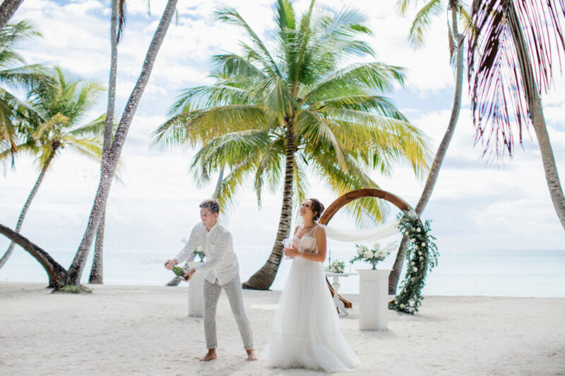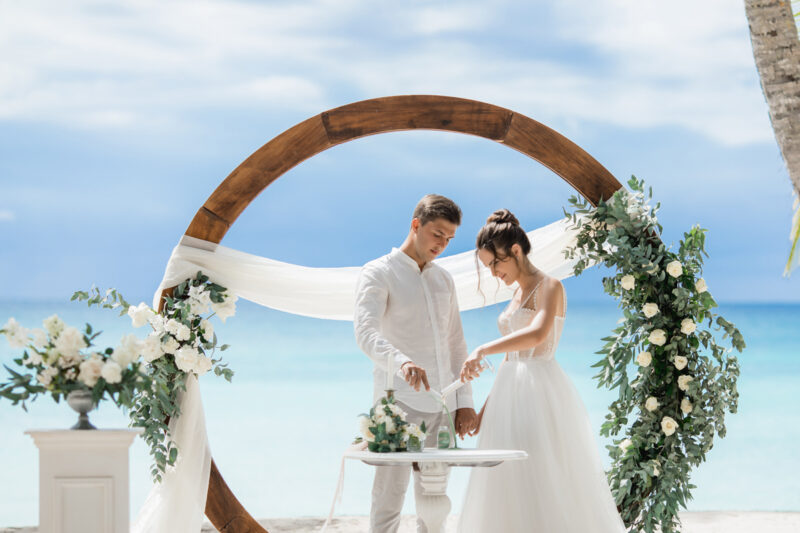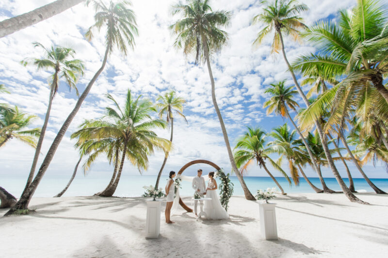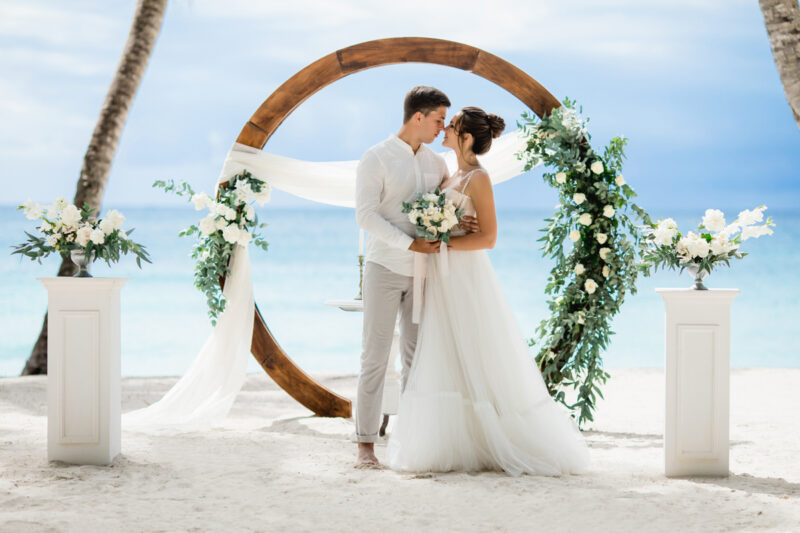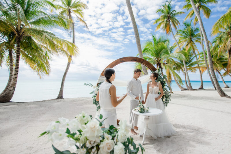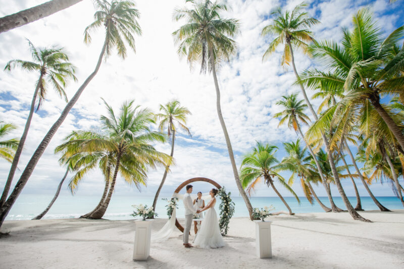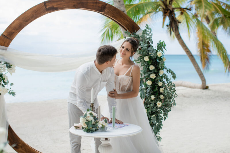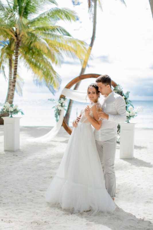 Свадьба для двоих на острове, под шум прибоя Карибского моря. Бесконечная классика - белый цвет и зелень.