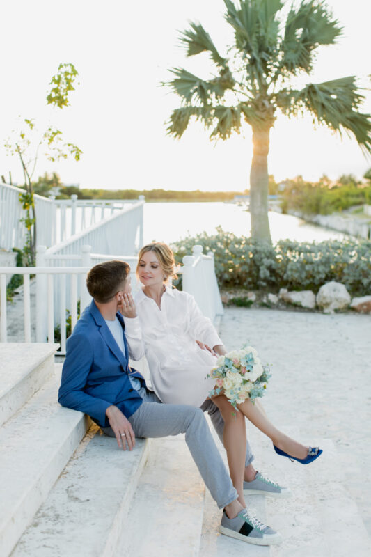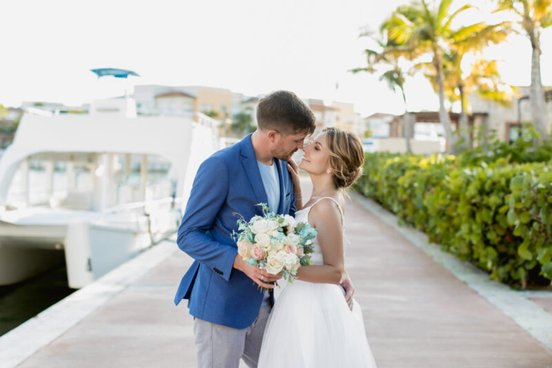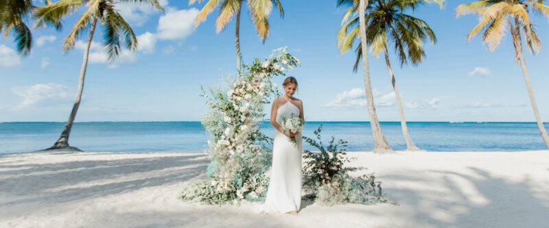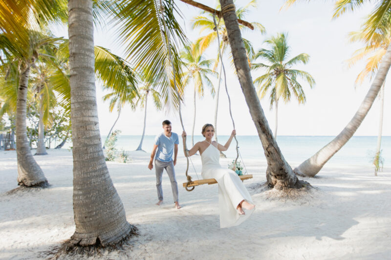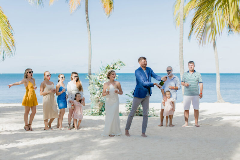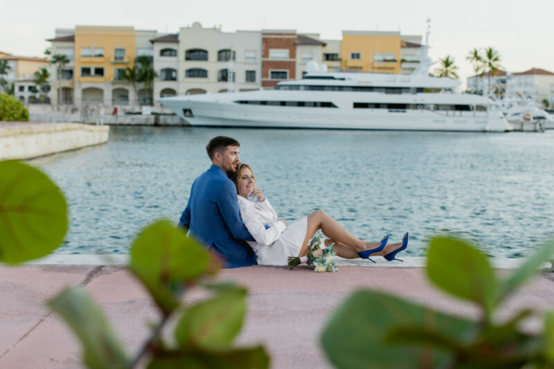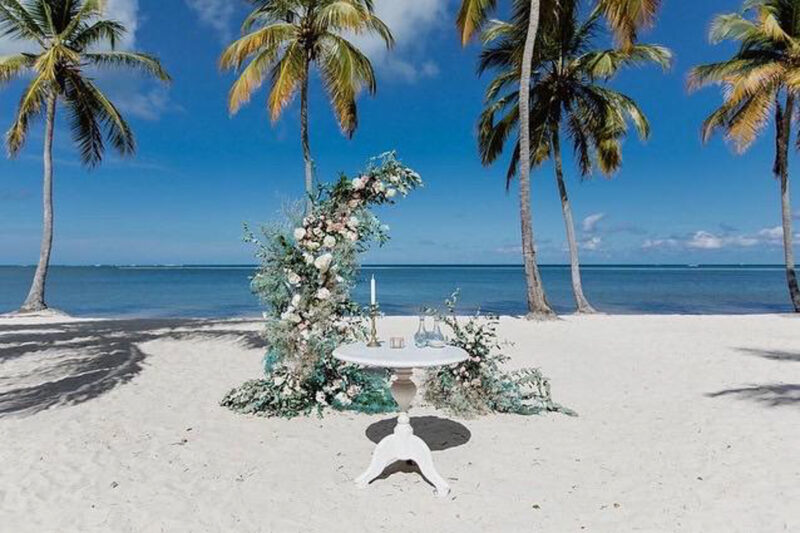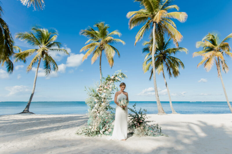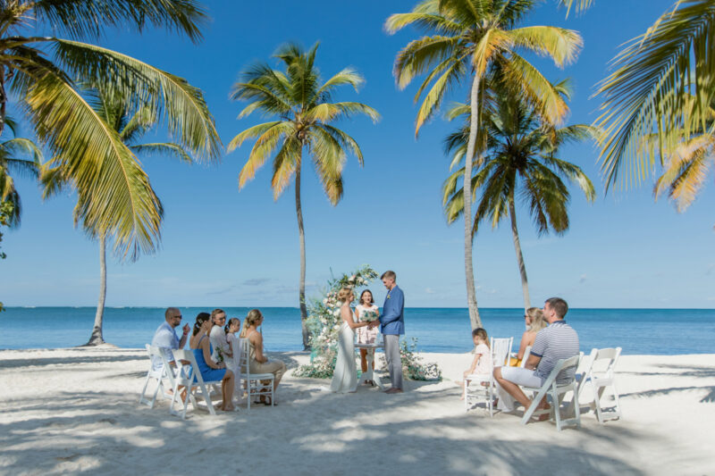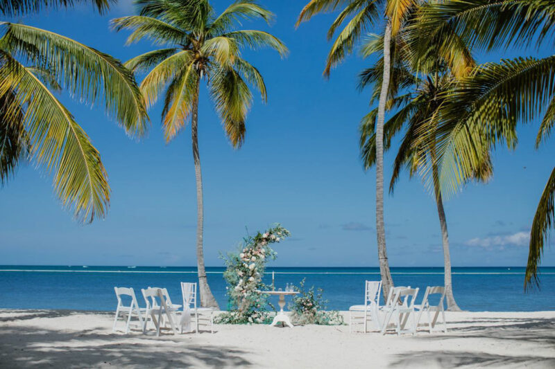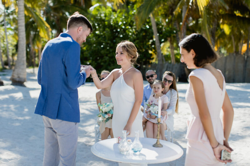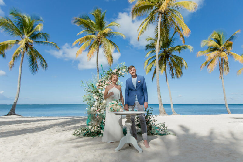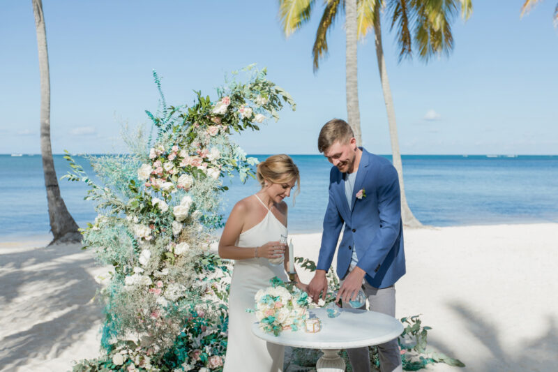 Красивая камерная церемония в окружении друзей и семьи на частном пляже в Пунта Кане в оттенках голубого цвета. И дополнительная фотосессия в комплексе Fishing Lodge Cap Cana.