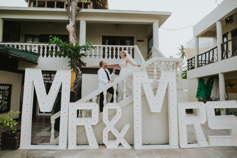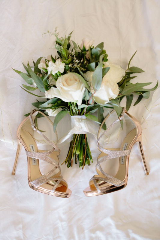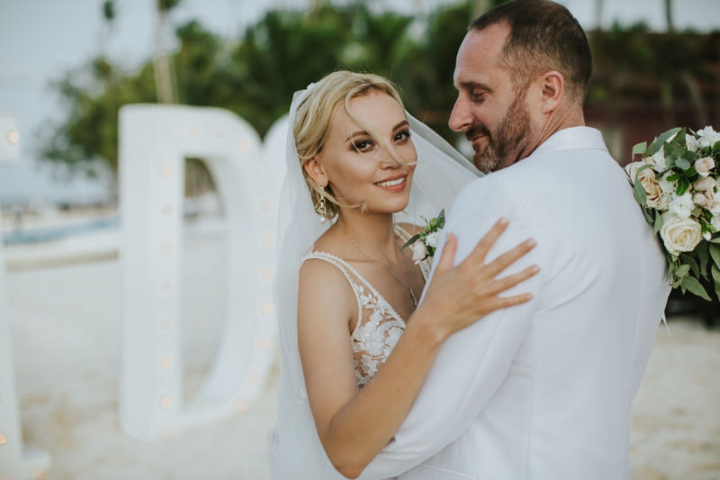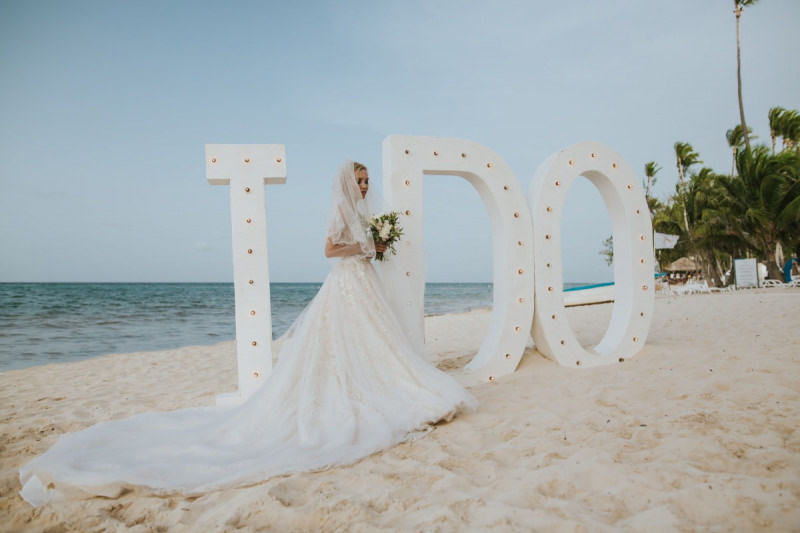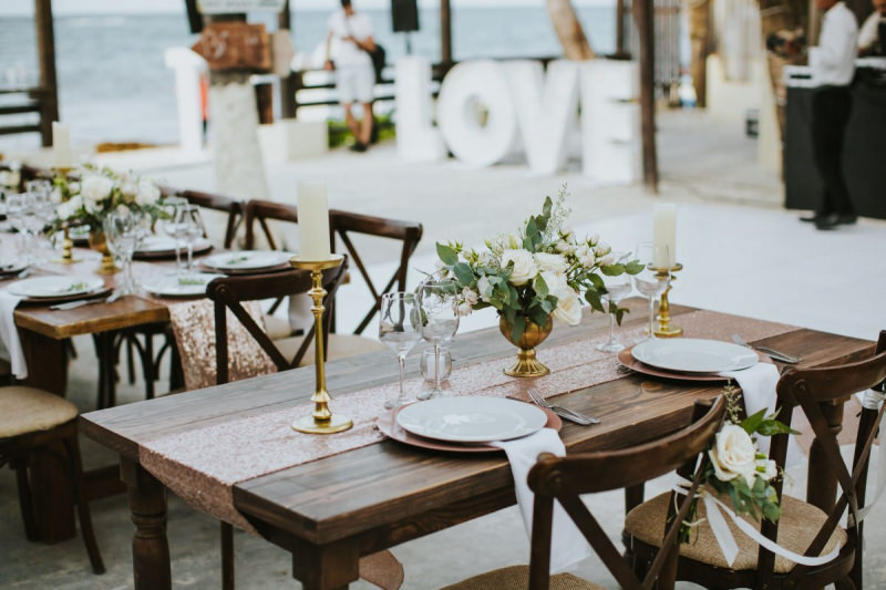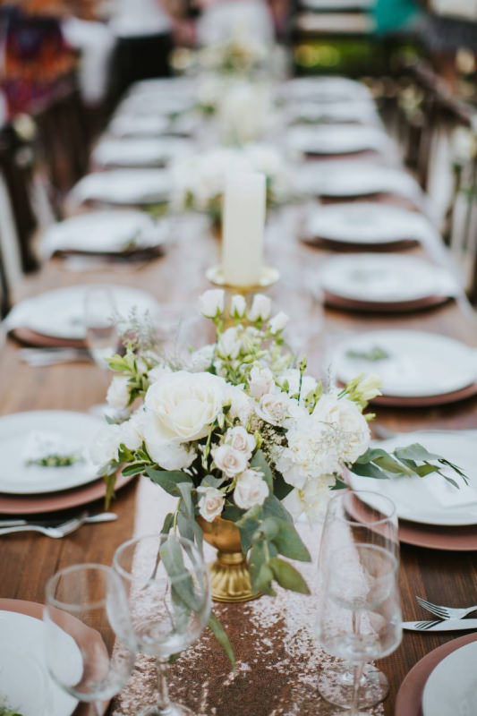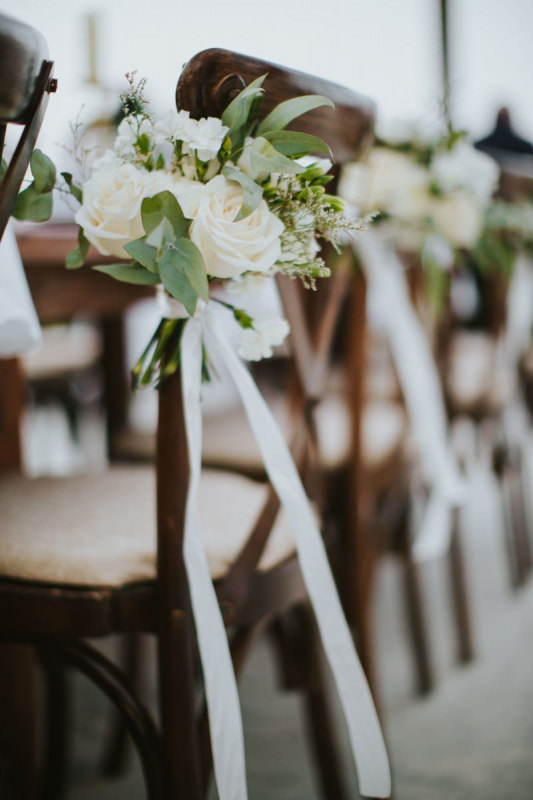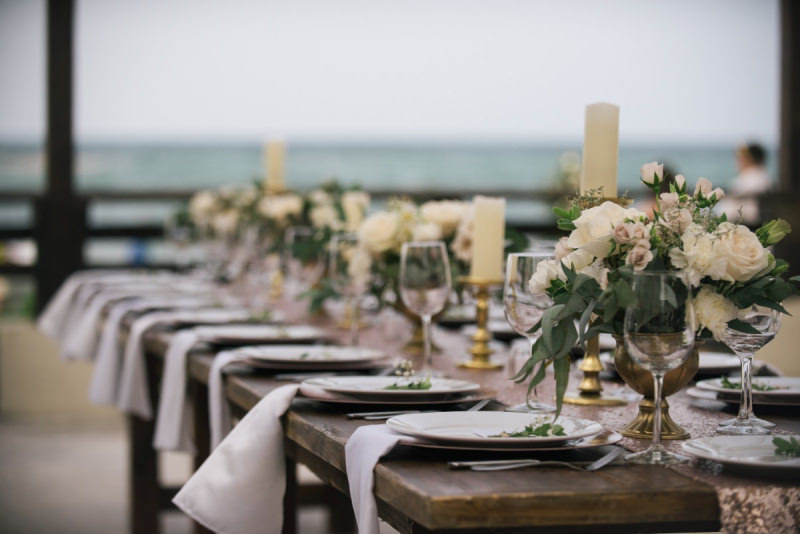 Красивая свадьба на берегу с окружении самых близких. Сотни цветов и цвет розового золота.