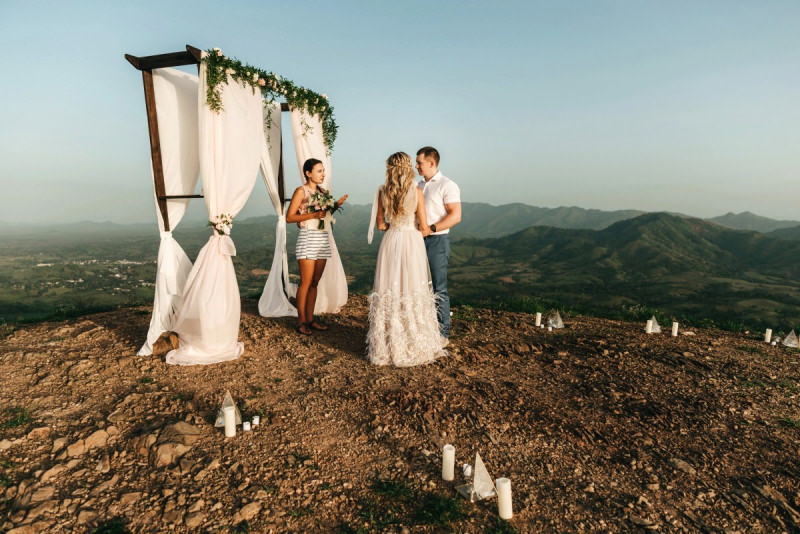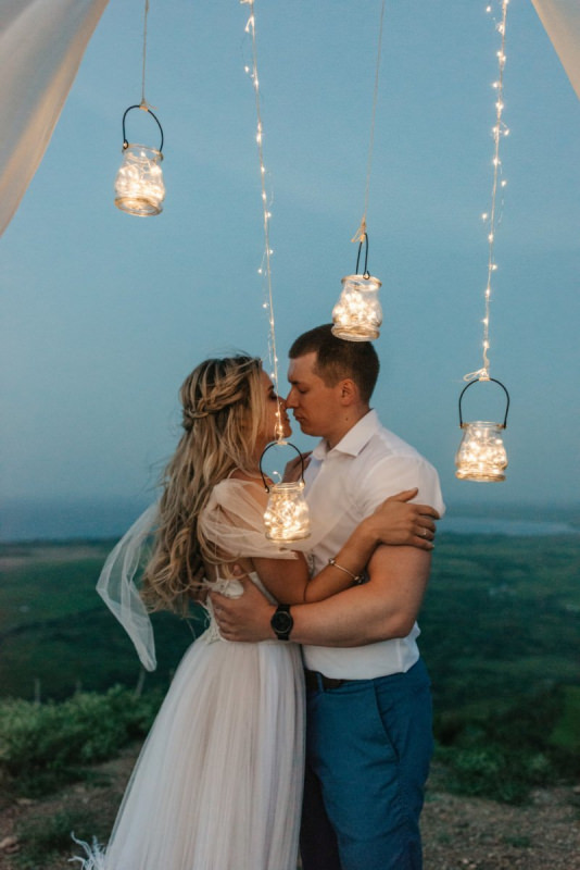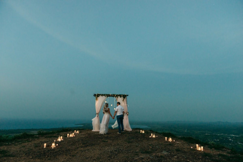 Потрясающая закатная церемония на вершине горы, с миллионами волшебных огоньков.